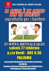 EVENTO “La salute è un diritto, non è un rovescio“, Palermo, Piazza Verdi, 27 febbraio 2021, ore 9,30, a cura dell’Associazione Movimento per la salute dei giovani e di Cosmann – Comitato Spontaneo Regionale per le Malattie Rare Neurologiche e Neurochirurgiche, presieduto da Cira Maniscalco. L’iniziativa del sit in è nata a seguito del reportage della trasmissione AGORÁ di RAI 3, del 1.02.2021 (visualizzabile a questo link) che denunciava la triste situazione dell’ospedale pediatrico ISMEP – Istituto Mediterraneo di Eccellenza Pediatrica – di Palermo, un’eccellenza di nome ma non di fatto. Un fiore all’occhiello mancato, un’opportunità per la Sicilia e per i siciliani che, alla fine, assume la forma della solita, desolante ‘incompiuta’. Progettato nel 2002 come centro di eccellenza per le cure di bambini, i lavori sono cominciati nel 2010, per poi interrompersi dopo solo due anni.